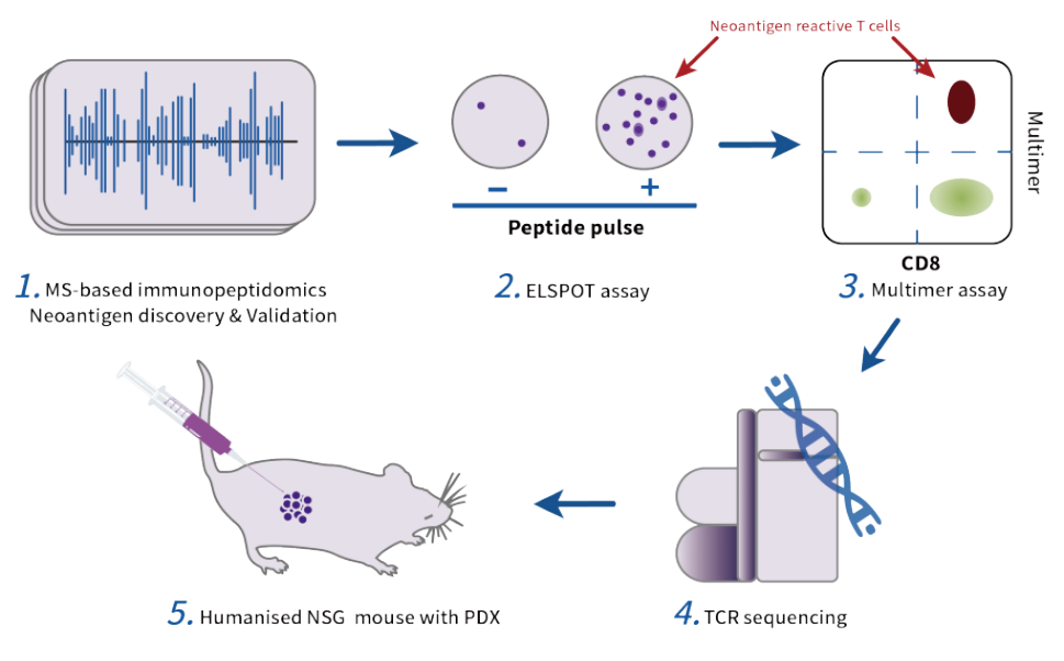 Employing proprietary attomole-level (10 mol) high-precision mass-spectrometric analysis platform (LC/MS/MS) to detect the HLA binding peptides on tumor cell surface directly;